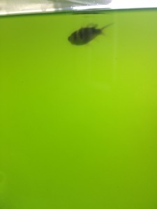 A água do lago ou aquário fica verde quando partículas microscópicas de algas estão em suspensão na água dando a coloração esverdeada na água. As algas necessitam basicamente de duas coisas para aparecer: nutrientes para se alimentar e de luz (natural ou artificial ).
